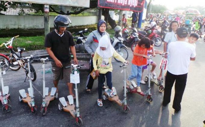 Penyedia jasa permainan atau alat sekuter di Bundaran Besar Palangkaraya, Ridwan mengku, sering mendapat pelanggan yang banyak terutama pada minggu pagi dan hari libur lainnya."Jika ada acara di bundaran, tentu banyak yang memakai alat ini, makanya saya sering disini untuk menyewakan alat ini kepada warga yang berolahraga," katanya.
