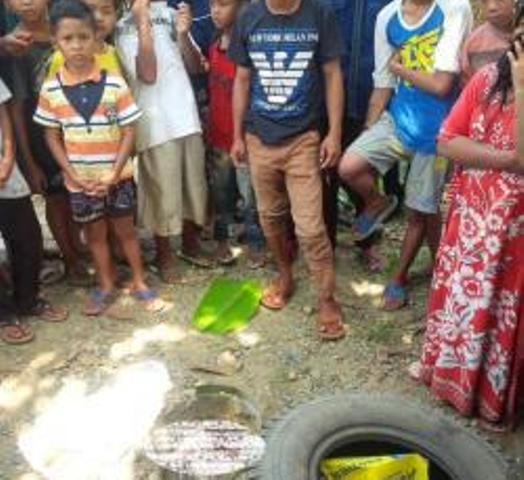Mayat orok berada dalam baskom jadi tontonan warga Desa Palimbangan Sari, Kecamatan Haur Gading, Kabupaten HSU, Jumat (8/1/2016).