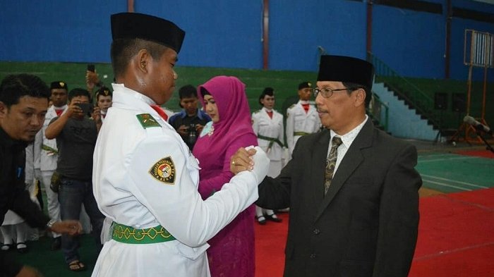 "Para anggota Paskibraka ini mereka telah mendapat pendidikan dan latihan dasar kepemimpinan selama 16 hari," tandasnya. (tribunkalteng.com/fadly setia rahman)