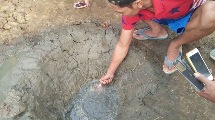 Puguh menjelaskan, dari dalam sumur tersebut keluar gas yang menyala ketika coba disulut dengan api.