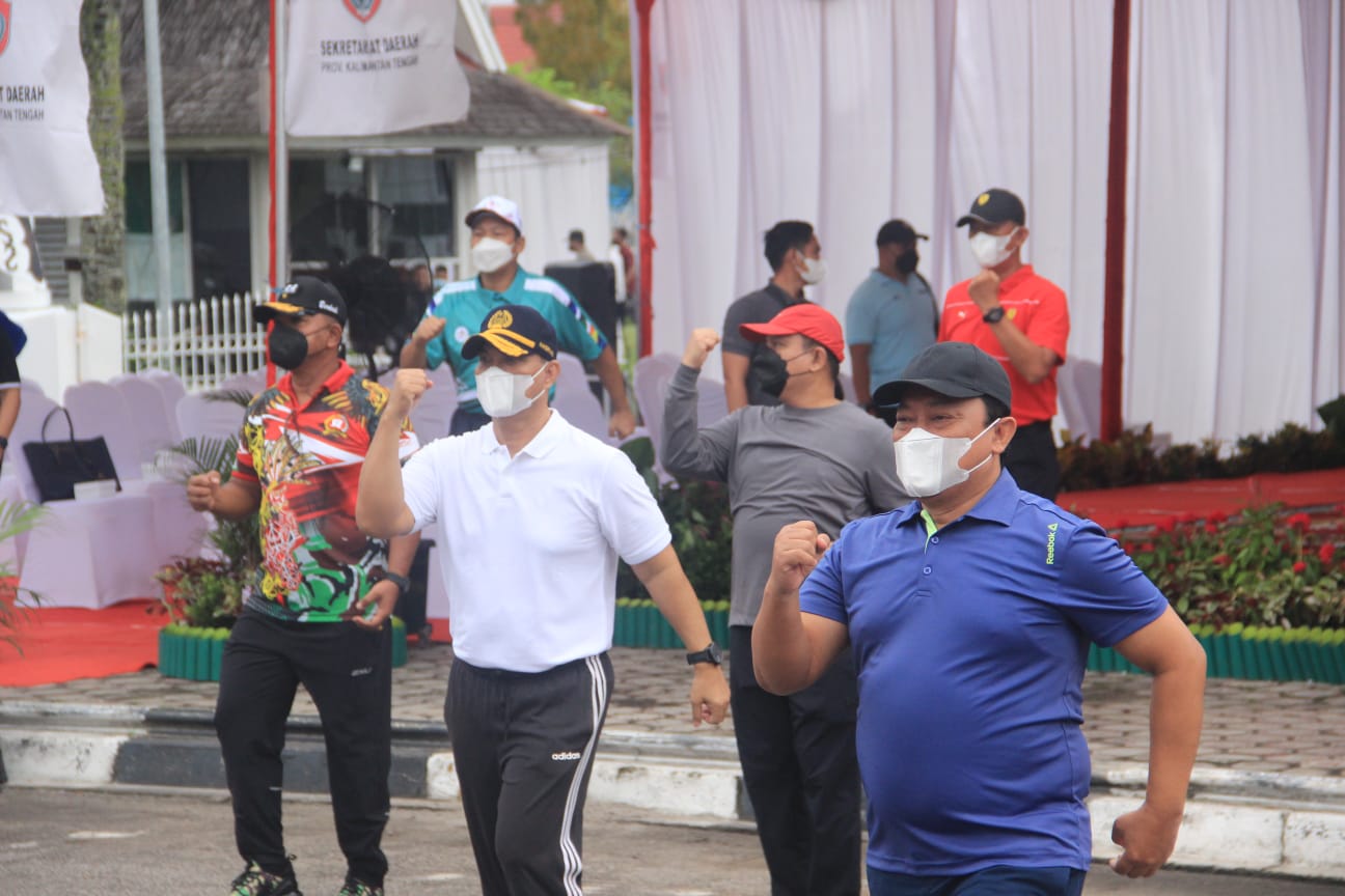 Senam pagi ini diikuti oleh Wakil Gubernur Kalteng H. Edy Pratowo, Danrem 102/PJG Brigjen TNI Yudianto Putrajaya Pj. Sekda Prov. Kalteng H. Nuryakin, mewakili Forkopimda Provinsi dan Kota Palangka Raya serta seluruh perangkat daerah di lingkungan Pemerintah Provinsi Kalimantan Tengah. Minggu (7/21/2021).