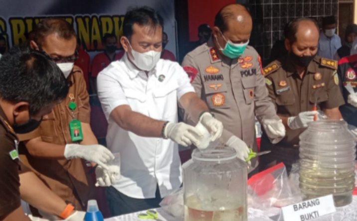 Pemusnahan barang bukti, dipimpin langsung Kapolda Kalteng, Irjen Pol Drs Nanang Avianto didampingi Dirresnarkoba Polda Kalteng, dan Kabid Humas Polda Kalteng.