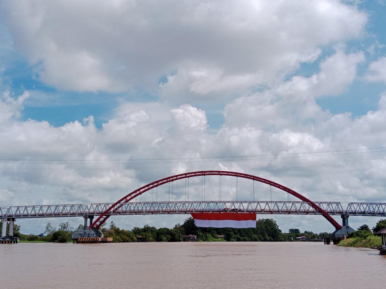 Peringati HUT Ke-77 RI, Kibarkan Bendera Merah Putih Raksasa di Jembatan Kahayan Palangkaraya