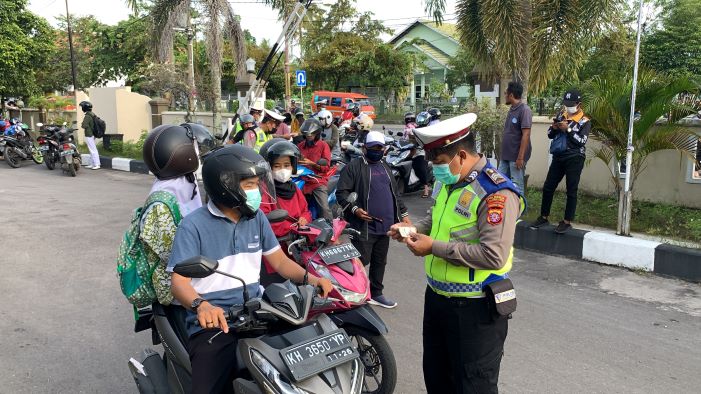 Sedangkan para pengendara yang telah lengkap dalam hal administrasi kendaraan dan kelengkapan seperti helm dipersilahkan melanjutkan perjalanan.