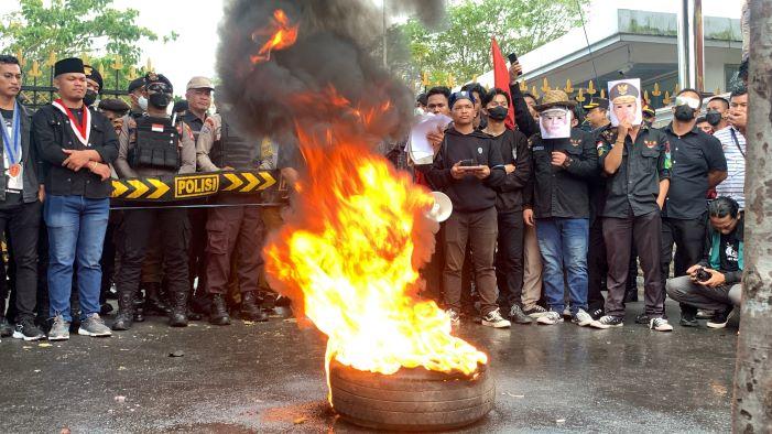 Tergabung dalam massa aksi Gerakan Masyarakat Merdeka (GERAM), sedikitnya puluhan massa aksi penuhi pintu gerbang Kantor Gubernur Kalteng.