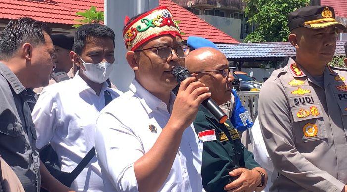 Kepala ATR/BPN Kantar Kota Palangkaraya, Yono Cahyono saat memberikan penjelasan kepada warga yang datang mendesak pelaksanaan program TORA di Palangkaraya dilaksanakan.
