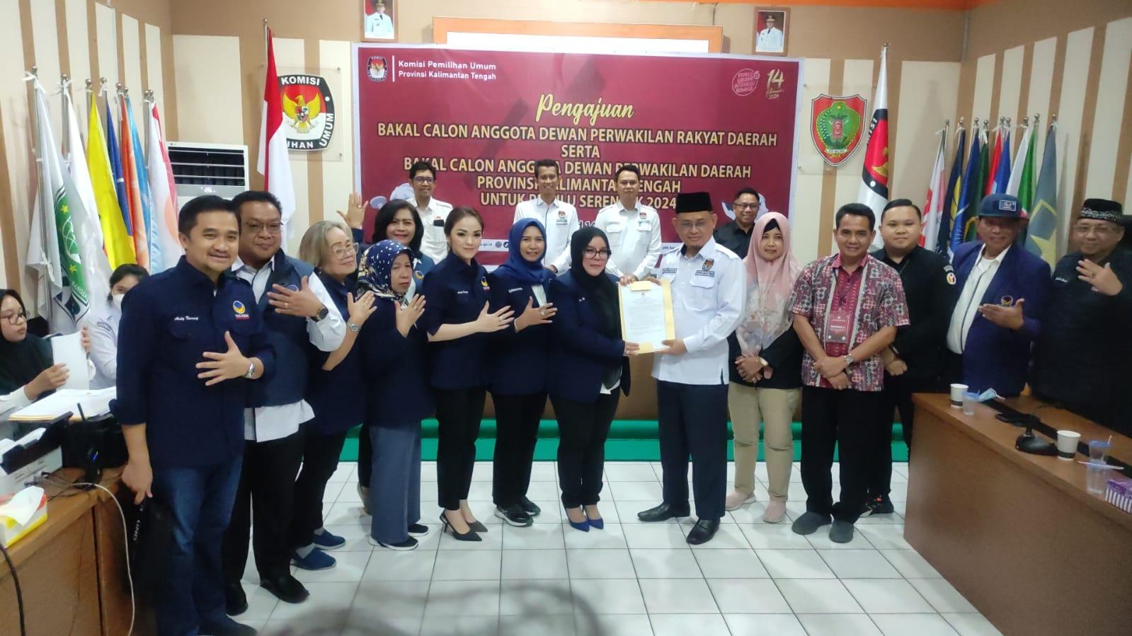 Dalam konferensi pers, Ketua DPW Partai Nasdem Kalteng Faridawaty Darland Atjeh menyampaikan pihaknya mendaftarkan 100 persen bacaleg sesuai kuota kursi di DPRD Kalteng, yakni sebanyak 45 bacaleg. Pendaftaran berlangsung dengan lancar dan telah diterima oleh KPU Kalteng.