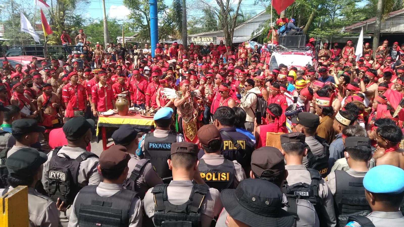 Sekira 500 anggota Pasukan Merah Tariu Borneo Bangkule Rajakng (TBBR), menggeruduk kantor Pemkab Kotim melakukan sejumlah tuntutan