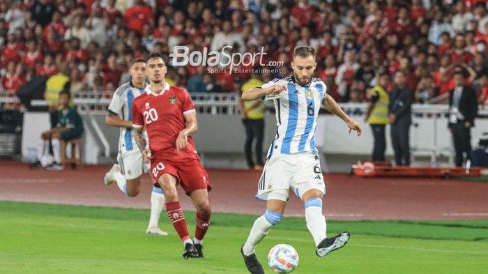 Skor hasil Timnas Indonesia vs Argentina adalah 0-2 berkat gol lewat tendangan jarak jauh Leandro Paredes dan sundulan Cristian Romero