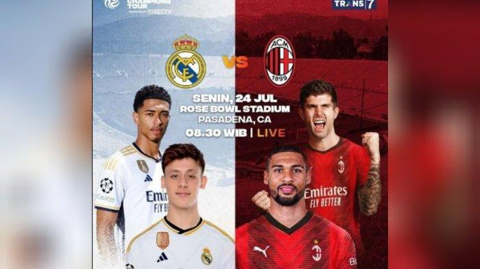 Real Madrid vs AC Milan Senin (24/7/2023) di Siaran Langsung Trans 7.Hasil laga Real Madrid vs AC Milan cek di Link Live Score.