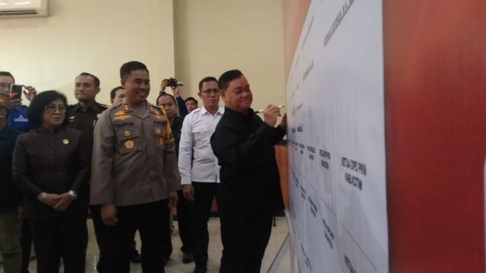 Selain pembacaan deklarasi yang dipimpin Ketua KPU Kotim Muhammad Rifki, dalam kegiatan tersebut juga dilaksanakan penandatanganan komitmen bersama untuk menjalankan 4 poin yang telah disepakati dalam kalimat deklarasi pemilu damai 2024.