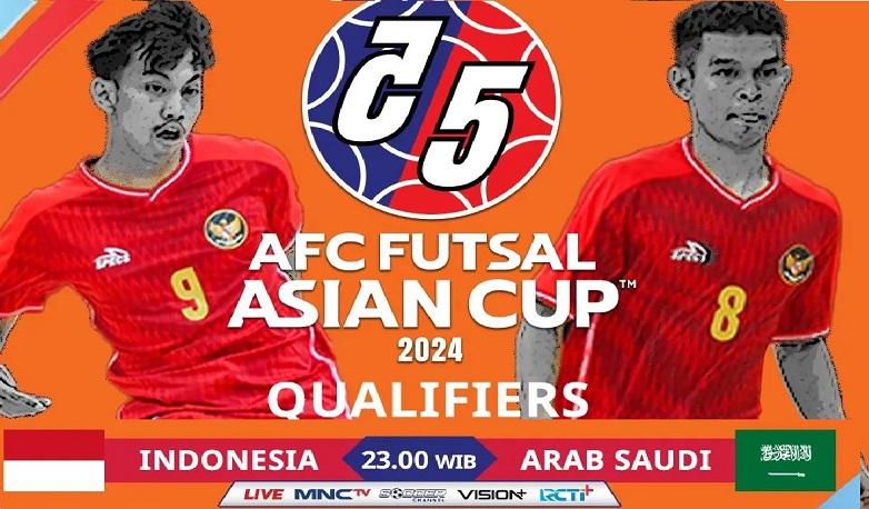 TRIBUNKALTENG.COM - Saksikan siaran langsung atau live streaming Indonesia vs Arab Saudi pada laga pamungkas grup B kualifikasi AFC Futsal Asian Cup 2024.
