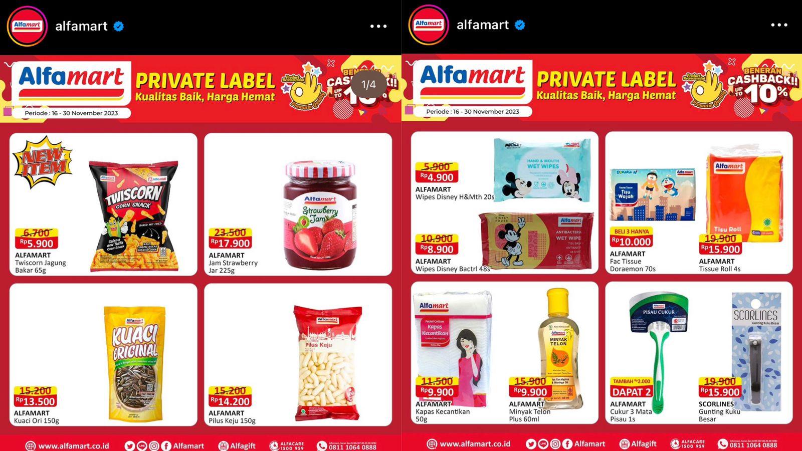 Selengkapnya, cek promo alfamart Private Label hari ini yang berlaku sejak periode 16 sampai 30 November 2023 berikut ini:
