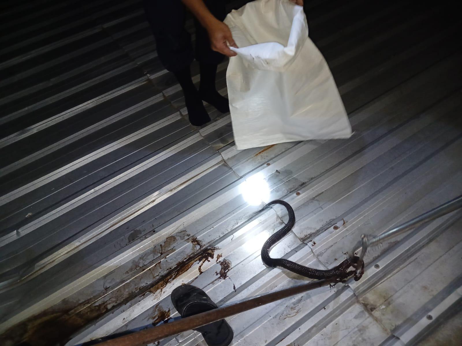 Menindaklanjuti laporan tersebut, Tim Rescue Damkar Dinas Pemadam Kebakaran dan Penyelamatan atau DPKP Palangkaraya melakukan tindakan penangkapan terhadap ular tadung tersebut.