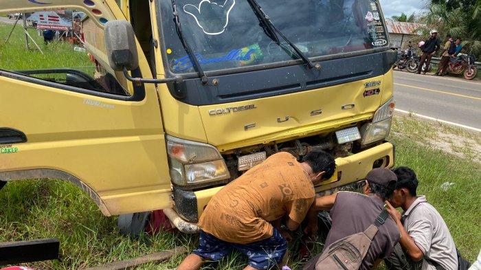2 Remaja Masuk Kolong Truk di Tikungan Jalan Sudirman Km 18 Kotim, Keduanya Dibawa ke RS