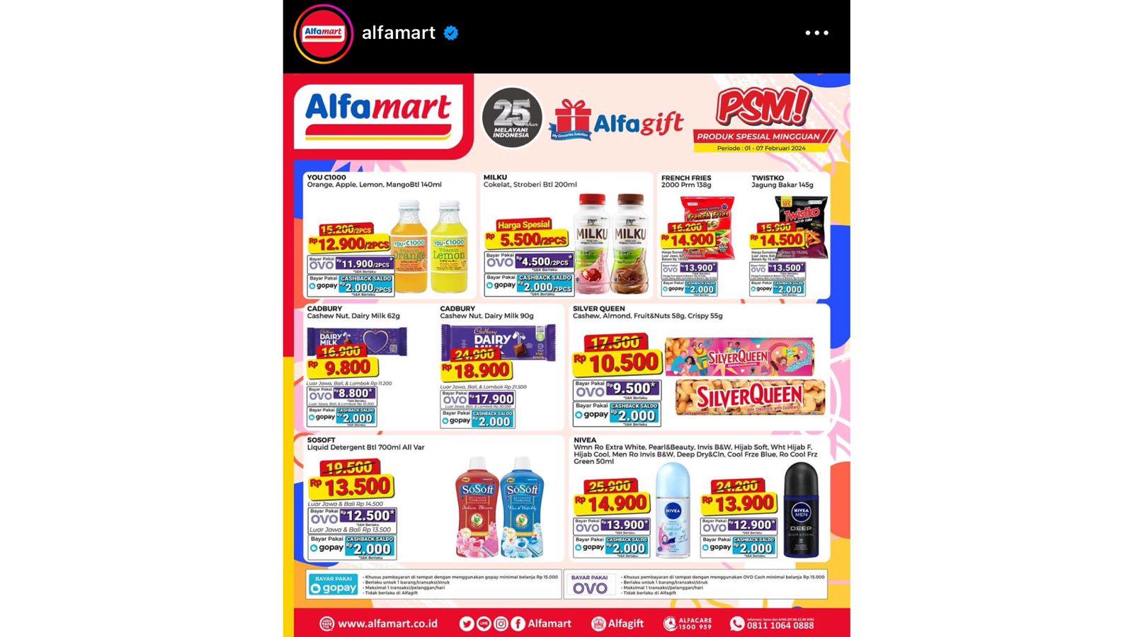 Promo PSM Alfamart yang berlaku mulai 1-7 Februari 2024, raih liquid deterjen Rp 13.500 dan deodorant Rp 14.900.