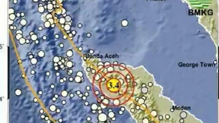 BMKG juga menginformasikan kekuatan gempa terkini yang mengguncang Kabupaten Nagan Raya dengan magnitudo 3,4 skaal richter.