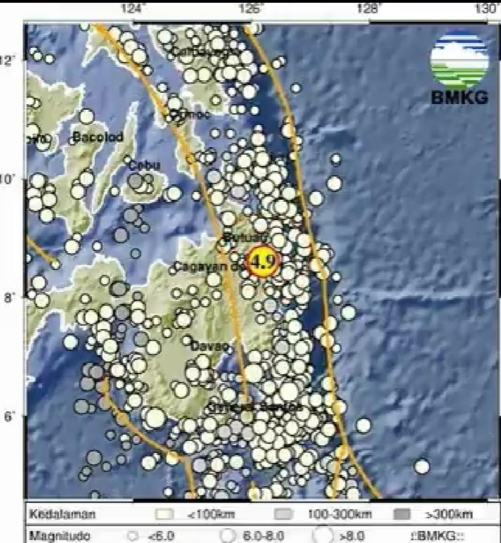 BMKG juga merilis kekuatan gempa terkini yang mengguncang Melonguane Sulut tersebut dengan magnitudo 4,9 skala richter.