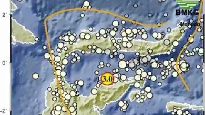 Info BMKG kekuatan gempa terkini yang mengguncang Tojouna Una Sulteng dengan magnitudo 3,0 skala richter.