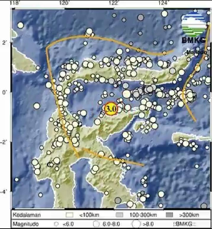 BMKG merilis gempa terkini yang mengguncang Tojouna Una Sulteng Senin 26 Februari 2024 dengan magnitudo 3,0 skala richter.