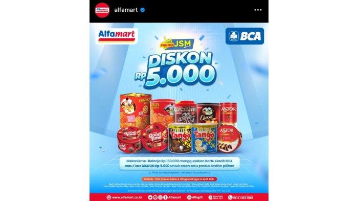 Daftar produk promo alfamart JSM hari ini, Minggu (31/3/2024), bayar pakai Kartu Kredit BCA diskon Rp 5.000, ini mekanismenya