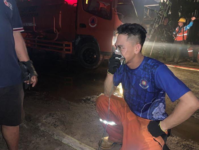 Damkar kelelahan hingga harus menggunakan oksigen saat melakukan pemadaman pada toko penjual bahan bangunan di Sampit Kabupaten Kotim, Kalteng.