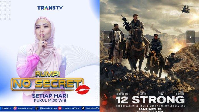 Jadwal acara Trans TV hari ini, Jumat 9 Agustus 2024, hiburan seru Rumpi No Secret dan film bioskop 12 Strong.