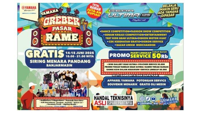 Gerebek Pasar Rame digelar secara gratis pada hari Sabtu-Minggu 14-15 Juni 2025 mendatang di Siring Menara Pandang Banjarmasin oleh PT STSJ Yamaha