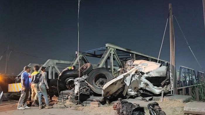 Truk besar itu sempat terdorong beberapa puluh meter sebelum terhenti di atas jembatan lalu tendengar suara ledakan disusul kobaran api besar