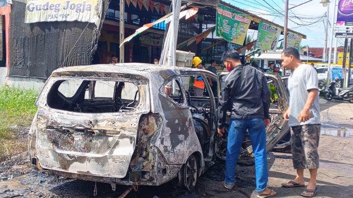 Warga geger akibat sebuah mobil tiba-tiba terbakar di dekat rumah makan di kawasan Taman Kuliner Tunggal Sangomang Palangkaraya